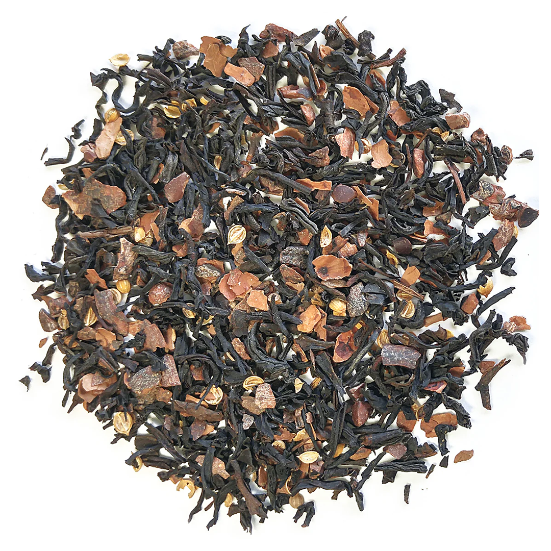 Assam Black Leaf Tea, Natural Chocolate Extract & Cocoa Nibs.